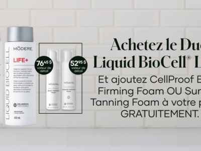 À l’achat du Duo Liquid BioCell® Life+, ajoutez gratuitement à votre choix CellProof Body Firming Foam ou CellProof Sunless Tanning Foam à votre panier – deux essentiels pour sublimer votre peau.
