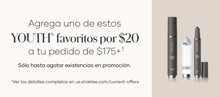 Los pedidos de $175 o más pueden agregar un producto selecto YOUTH® por solo $20.