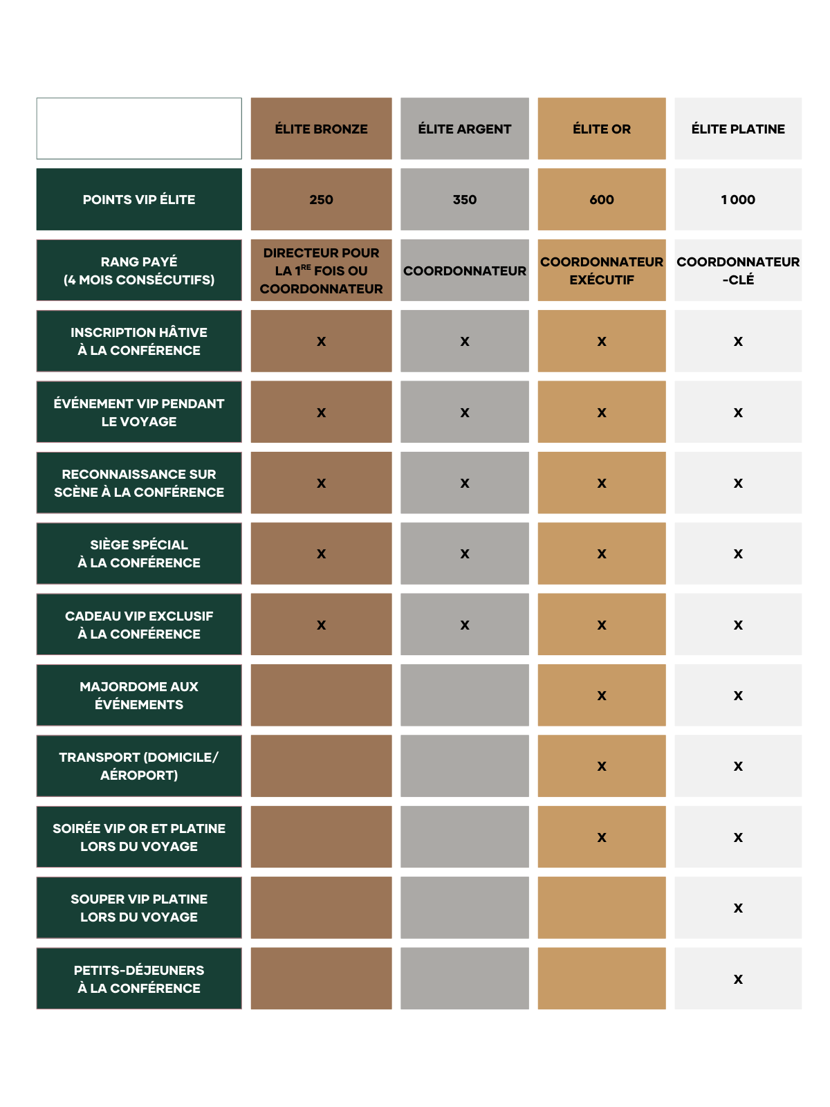 - Cadeaux et reconnaissance à la Conférence de l’Amérique du Nord – Les ambassadeurs VIP Élite de 2026 (qui se sont qualifiés en 2025) seront invités à des événements spéciaux exclusifs pour les méritants VIP Élite lors de la Conférence de l’Amérique du Nord. Nos méritants VIP Élite auront aussi droit à des sièges préférentiels et à de la reconnaissance sur scène.